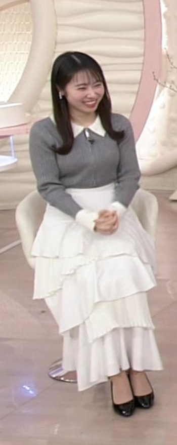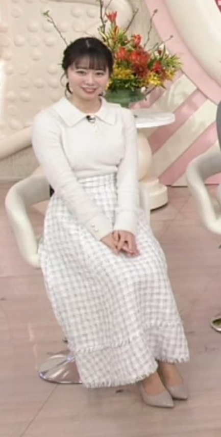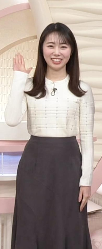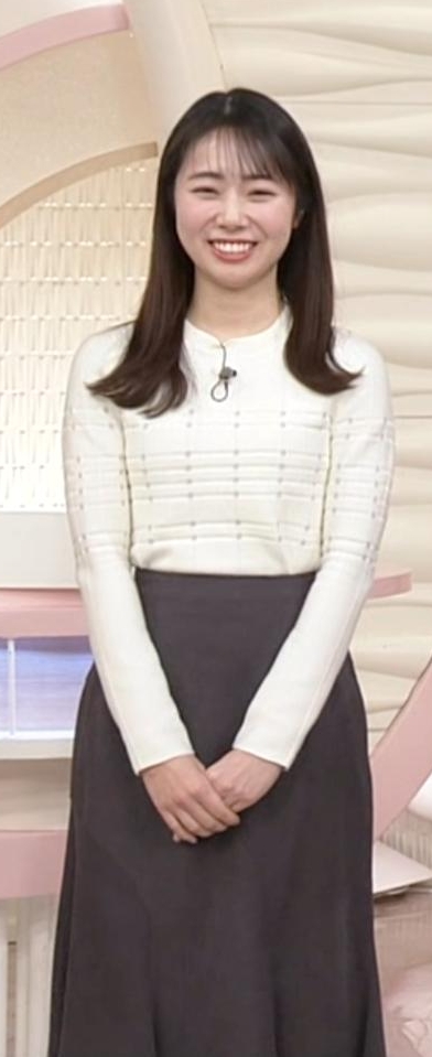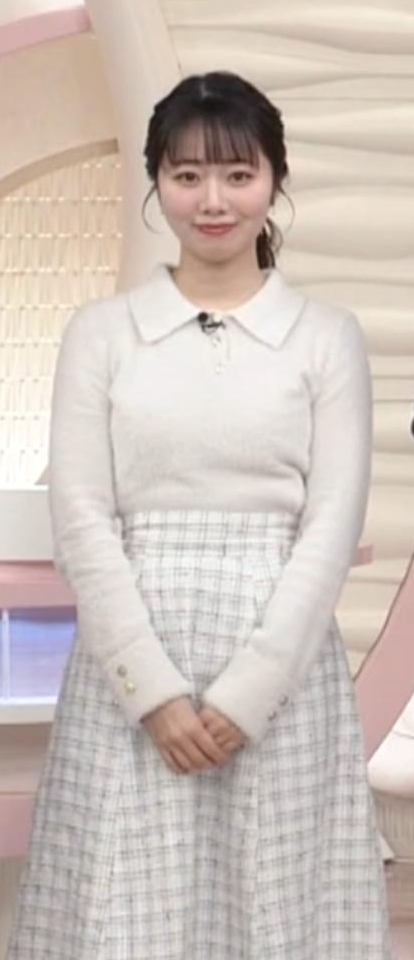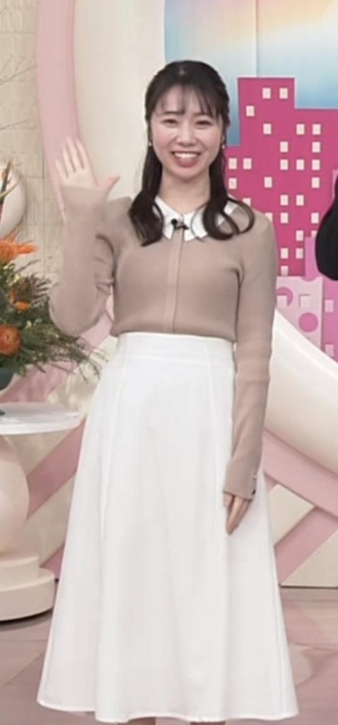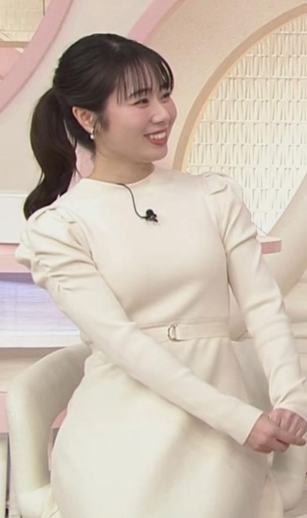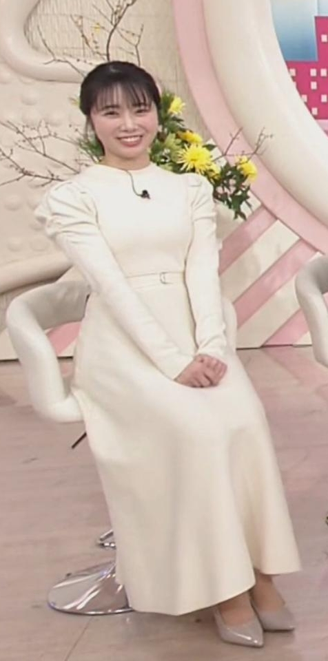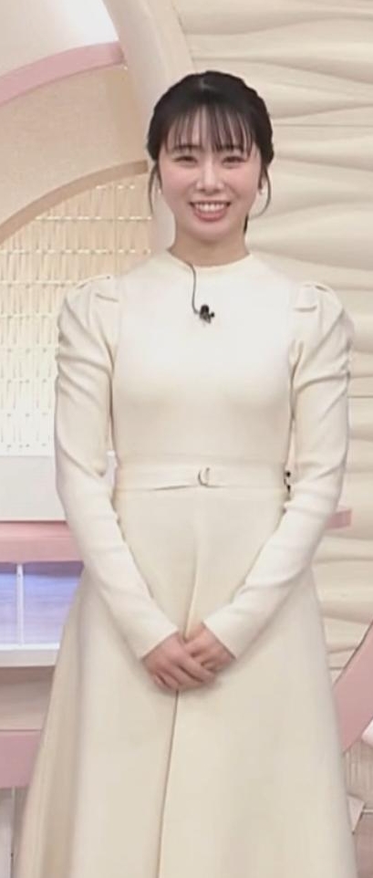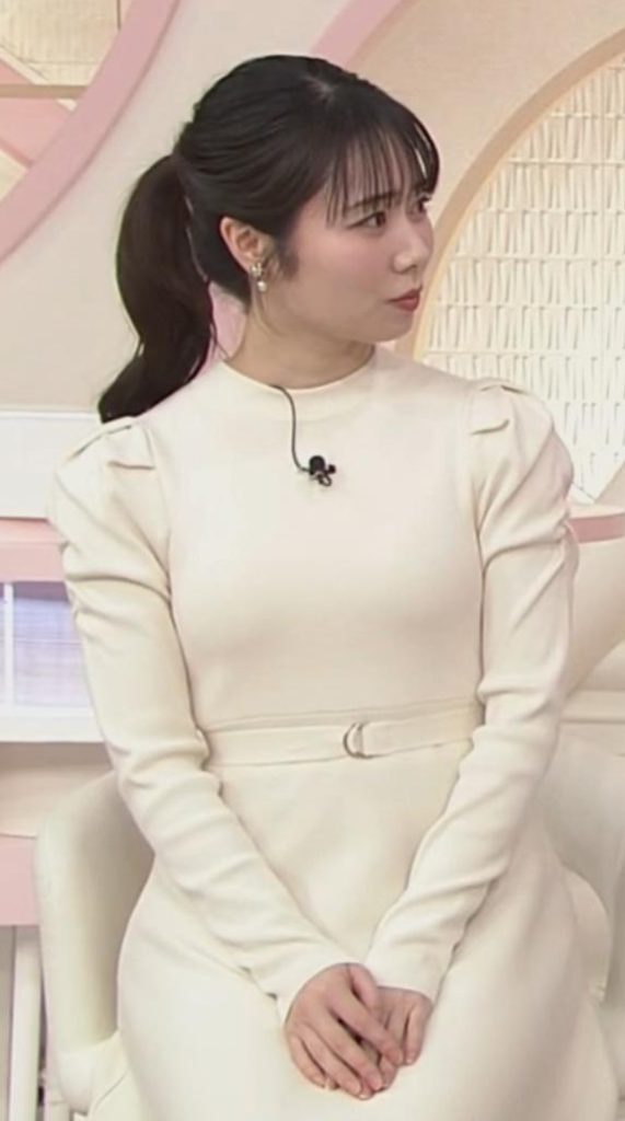 - 4形くっきり過ぎる白ニットワンピが可愛すぎる安藤咲良アナ