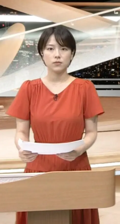 ウエストも細くて美胸OPでショートが似合う古旗笑佳アナです