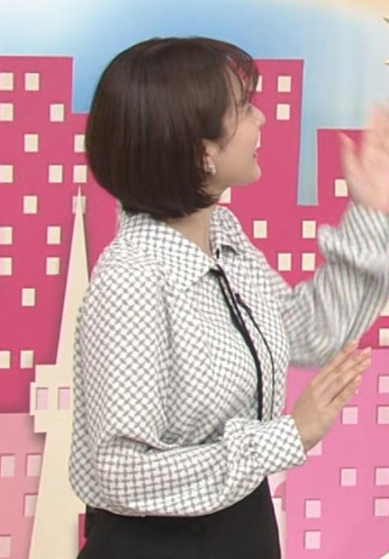- 9ぴたぴた過ぎてボタンが弾け飛びそうな河出奈都美アナ
