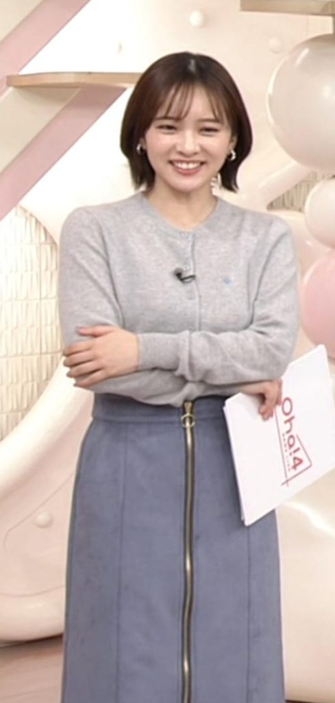 グレーニットカーディガンが薄くて形くっきりの河出奈都美アナ