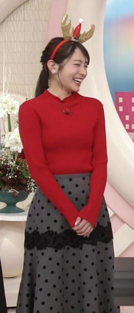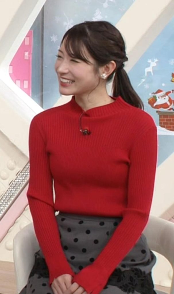 真っ赤なピタピタニットでバストラインと大人の色気をアピールしてた北川彩アナ