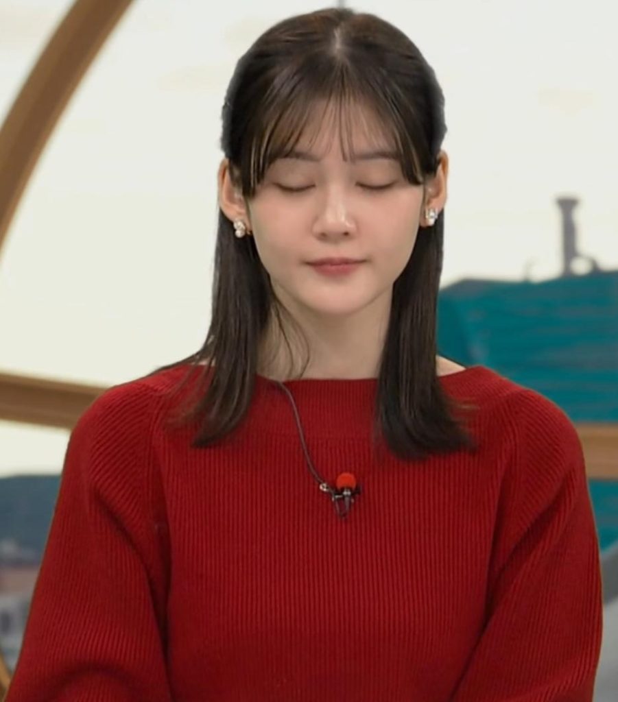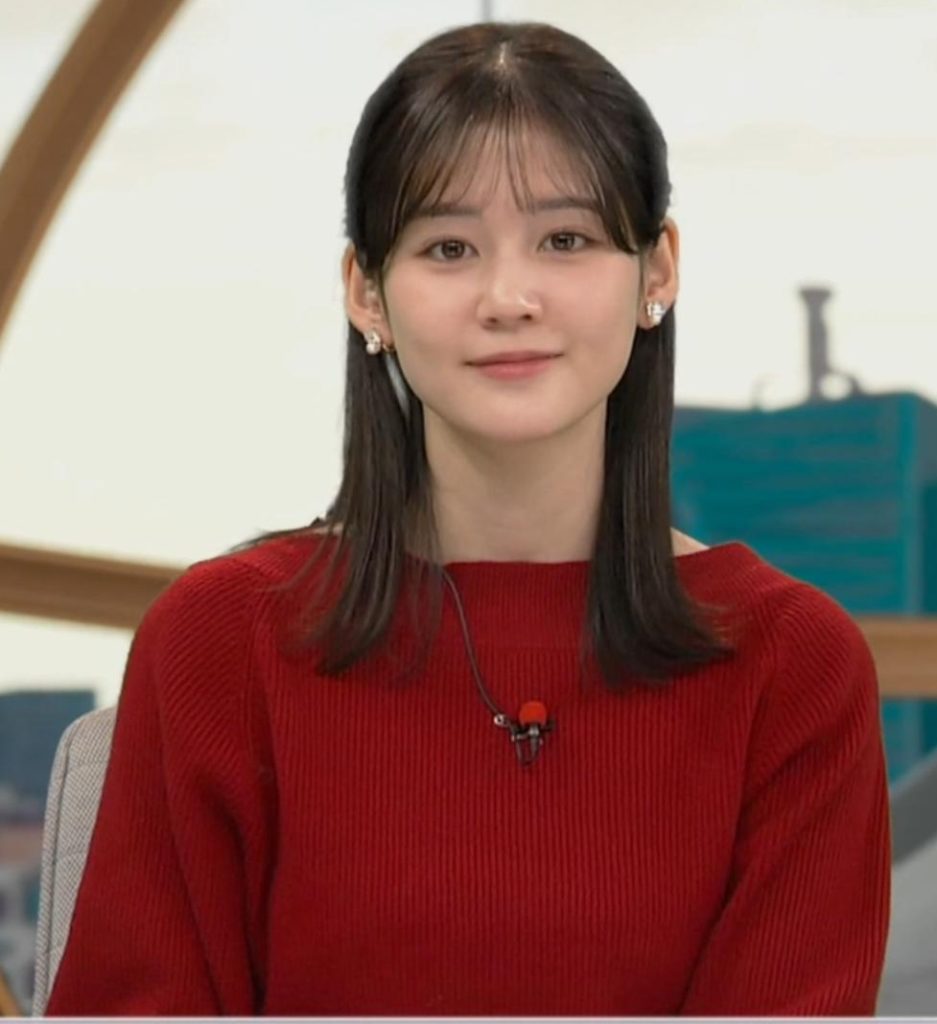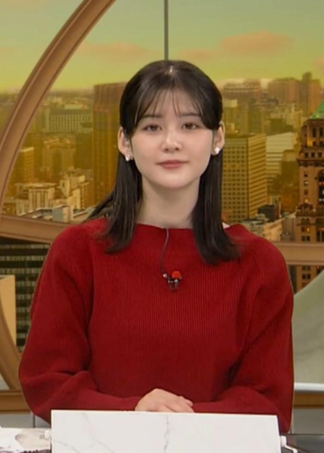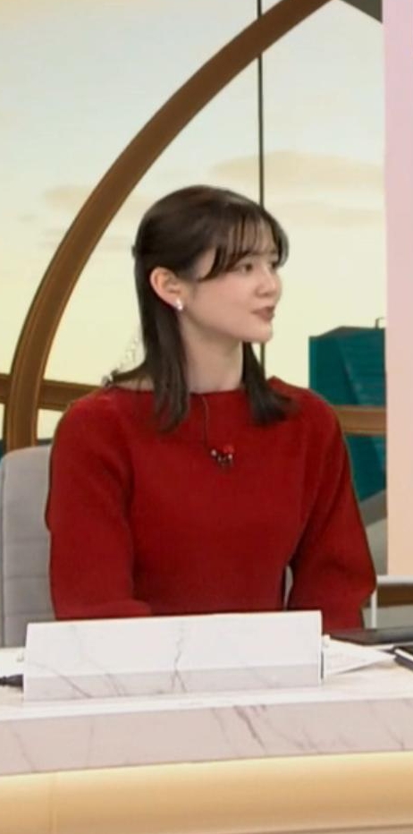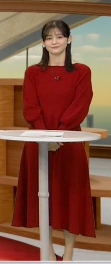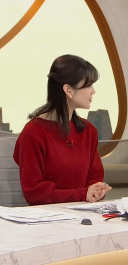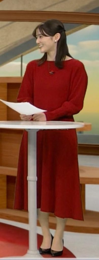真っ赤なニットでくっきりさせて形の良さをアピールしてた中原みなみアナ