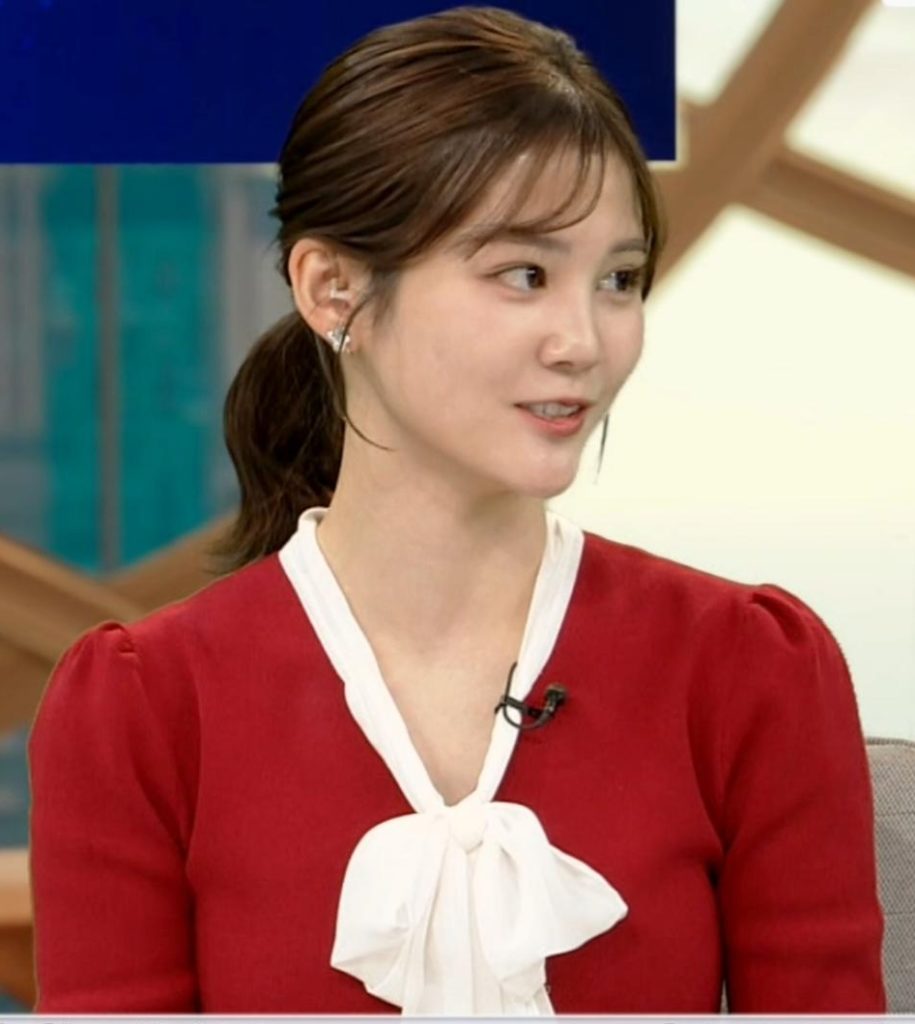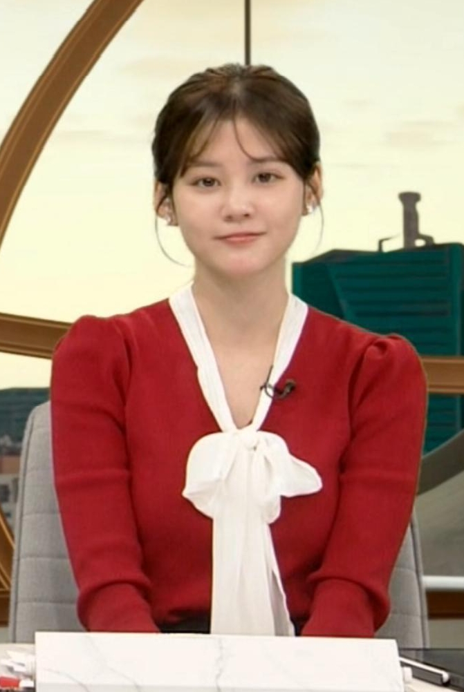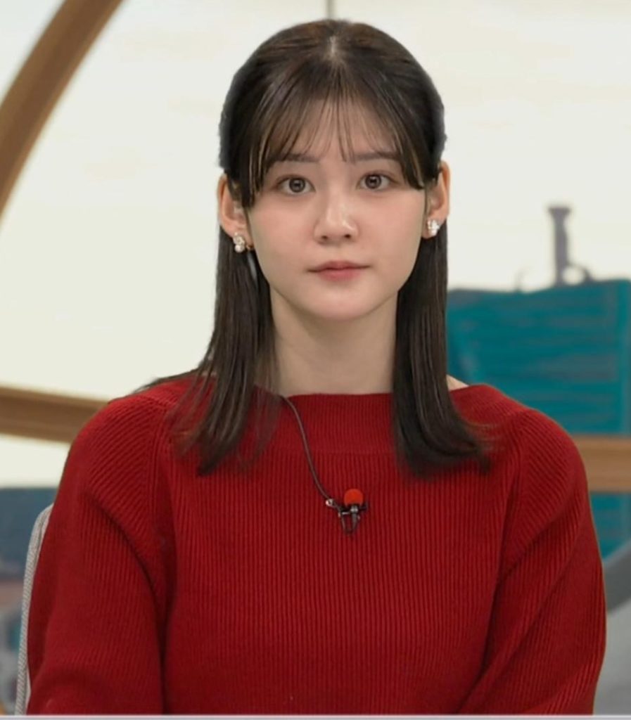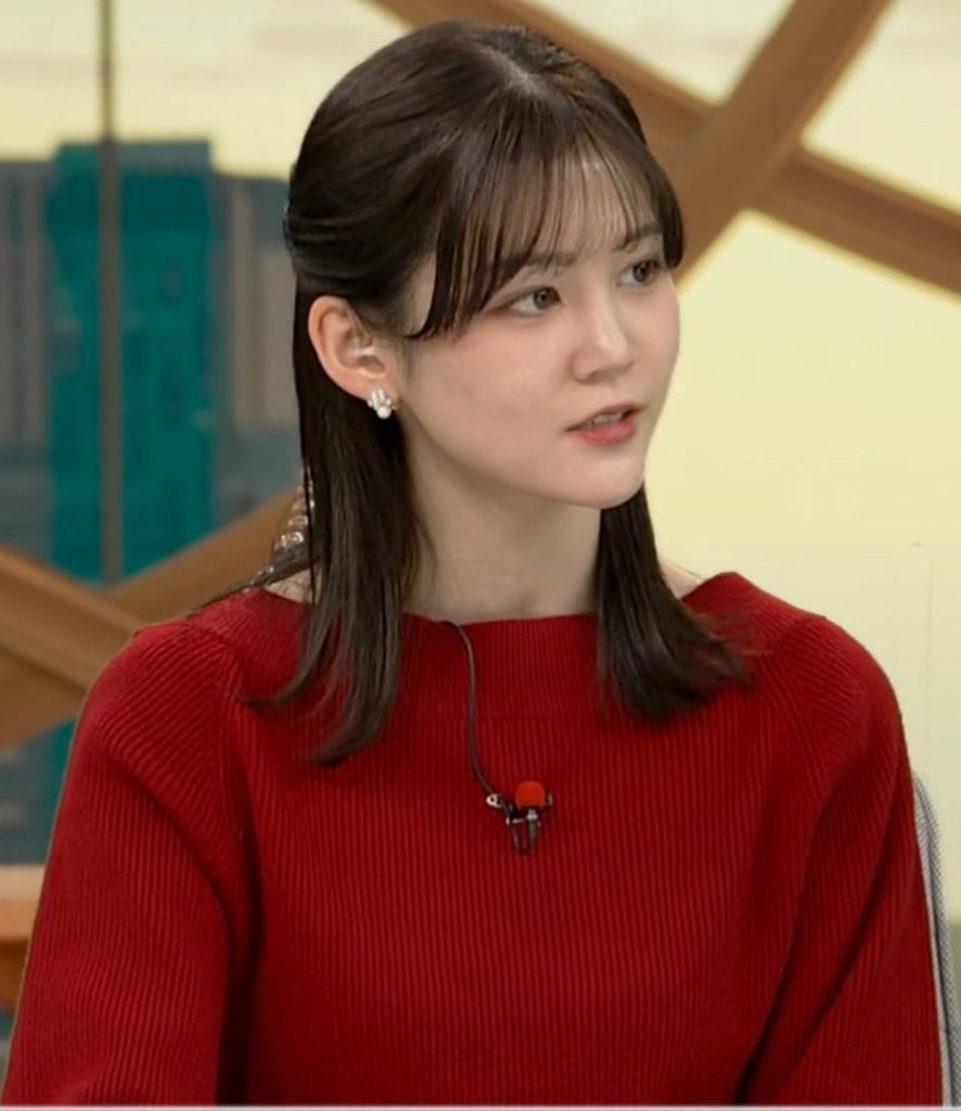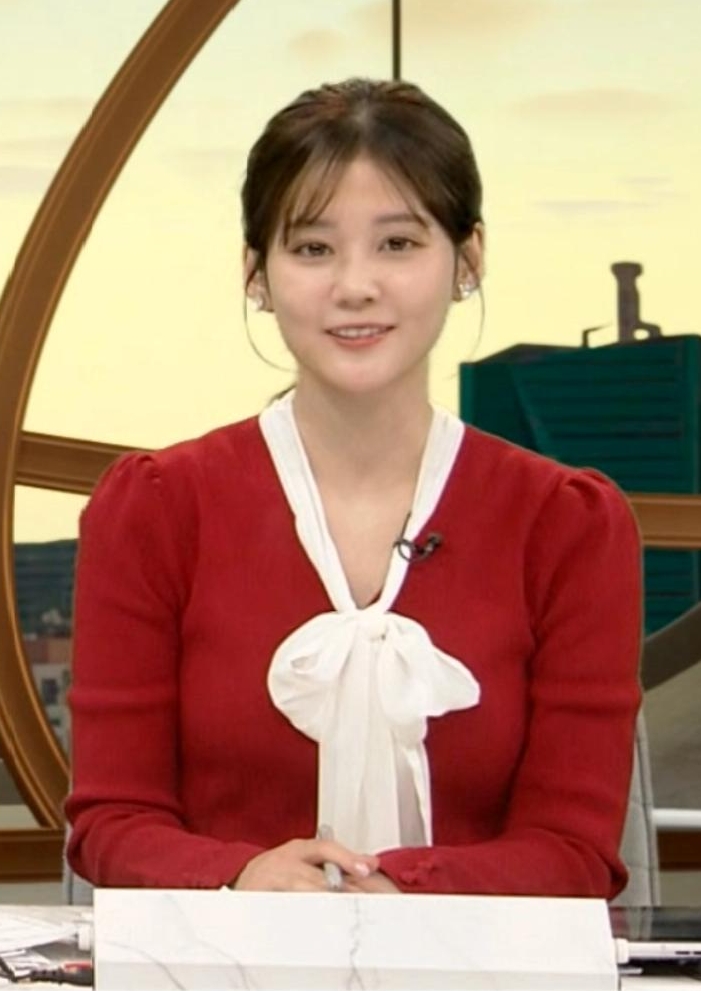 真っ赤なニットでくっきりさせて形の良さをアピールしてた中原みなみアナ