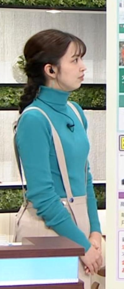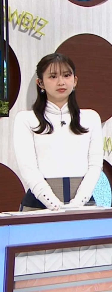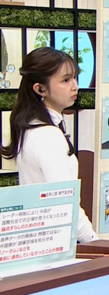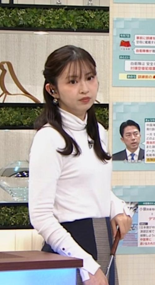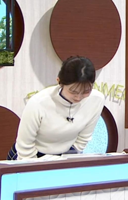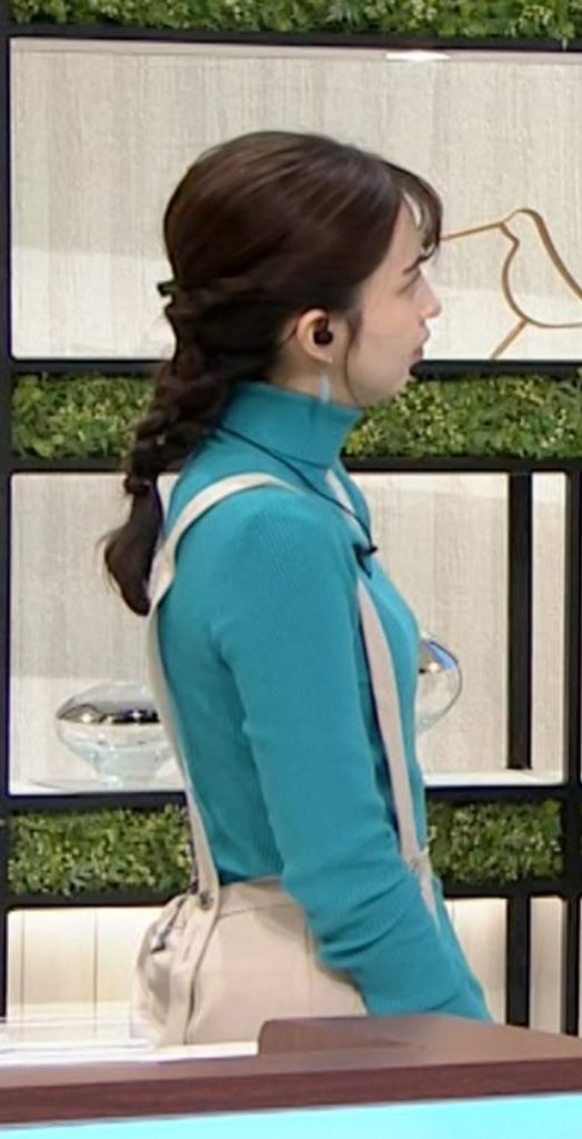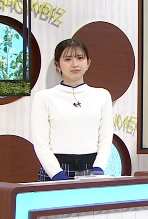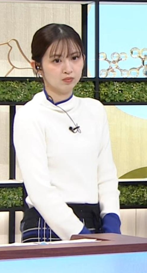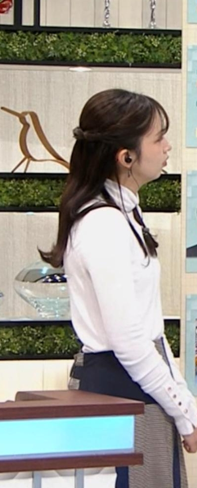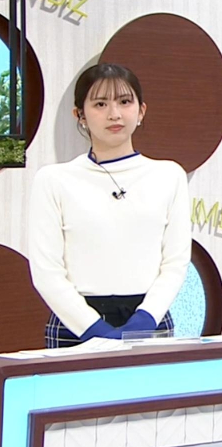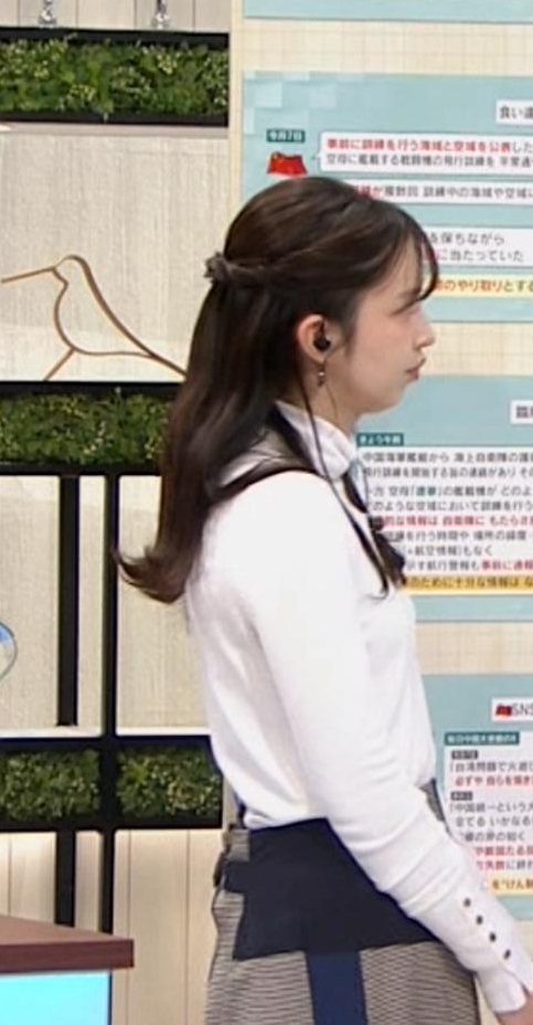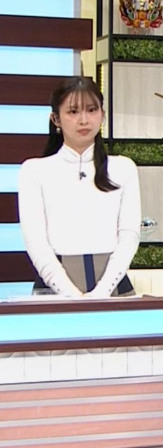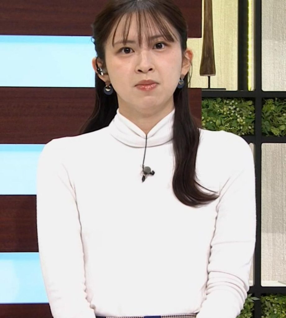 横アングルでくっきりピチピチ白ニットだった西尾桃アナです