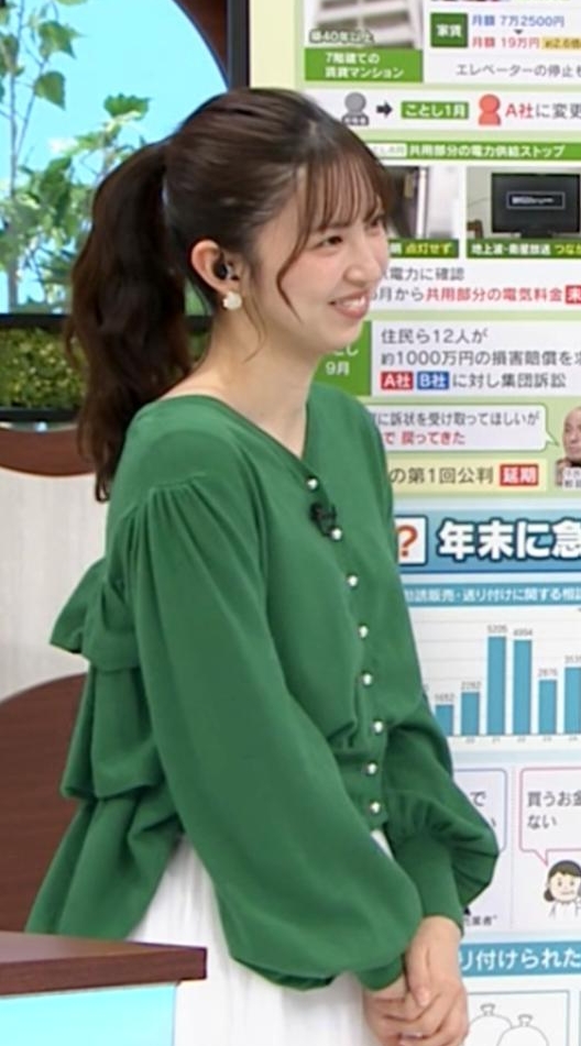白ニットでくっきり横アングルだった西尾桃アナ