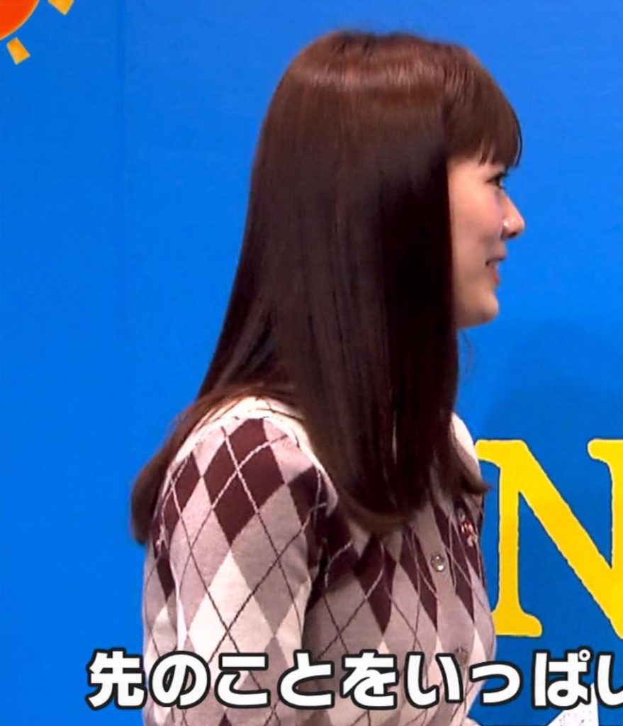 ニットカーディガンの横アングルが絶景だった谷尻萌ちゃん