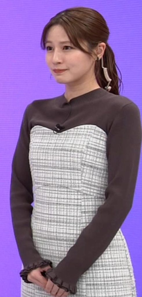 ぴたぴたワンピでスタイルをアピールしてた美胸OP堤礼実アナ