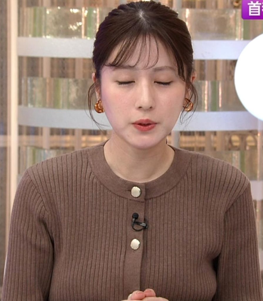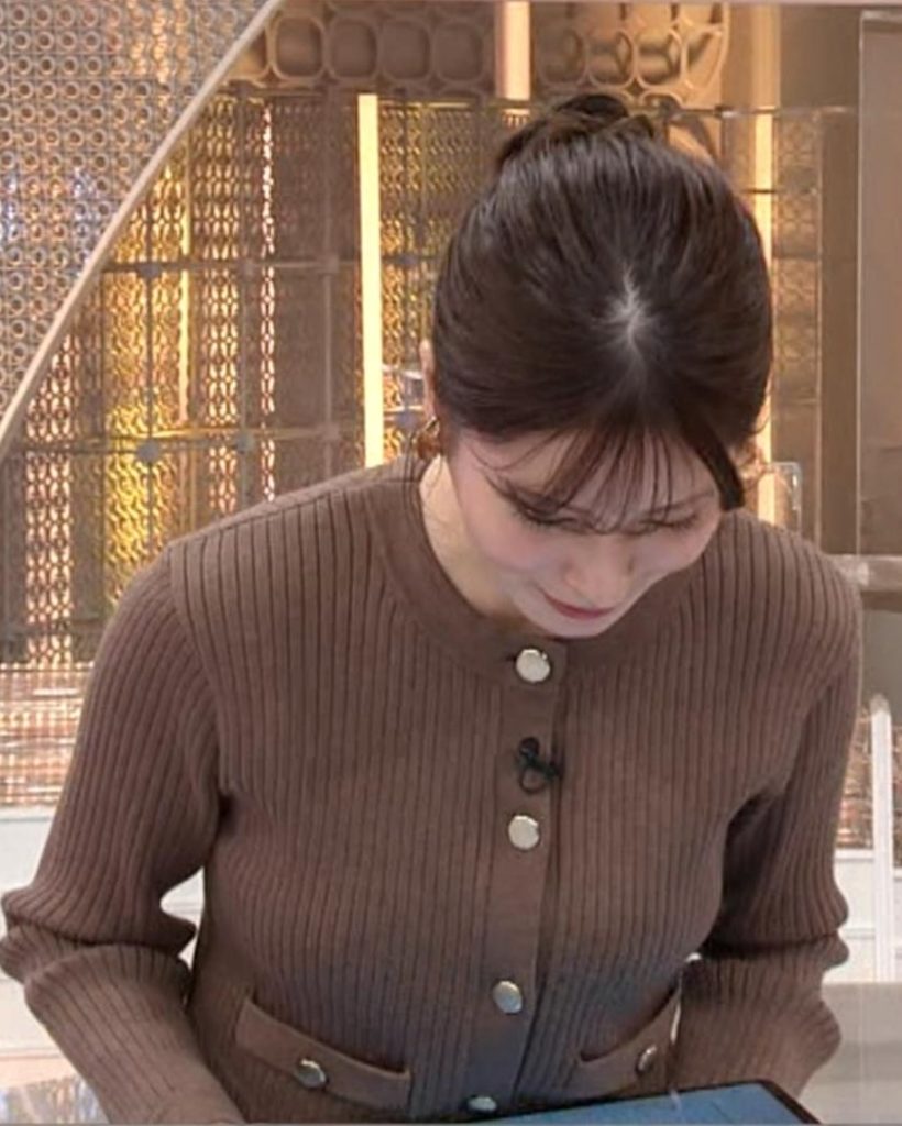 - 8形が浮き出るピチピチカーディガンで可愛すぎる堤礼実アナ