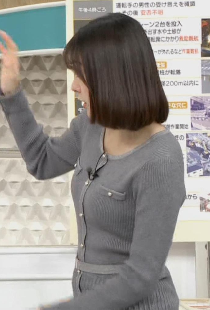 横アングルで撮られまくってる曲線美くっきりカーディガンの若林有子アナ
