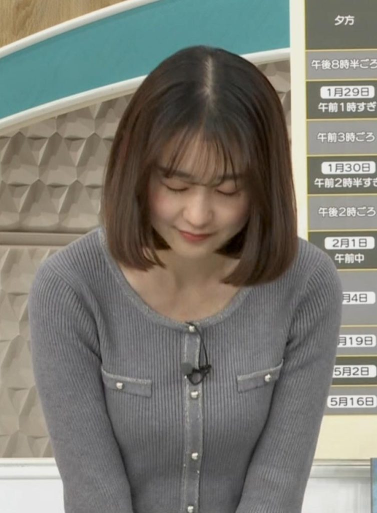 - 4横アングルが可愛すぎる若林有子アナのニットカーディガン